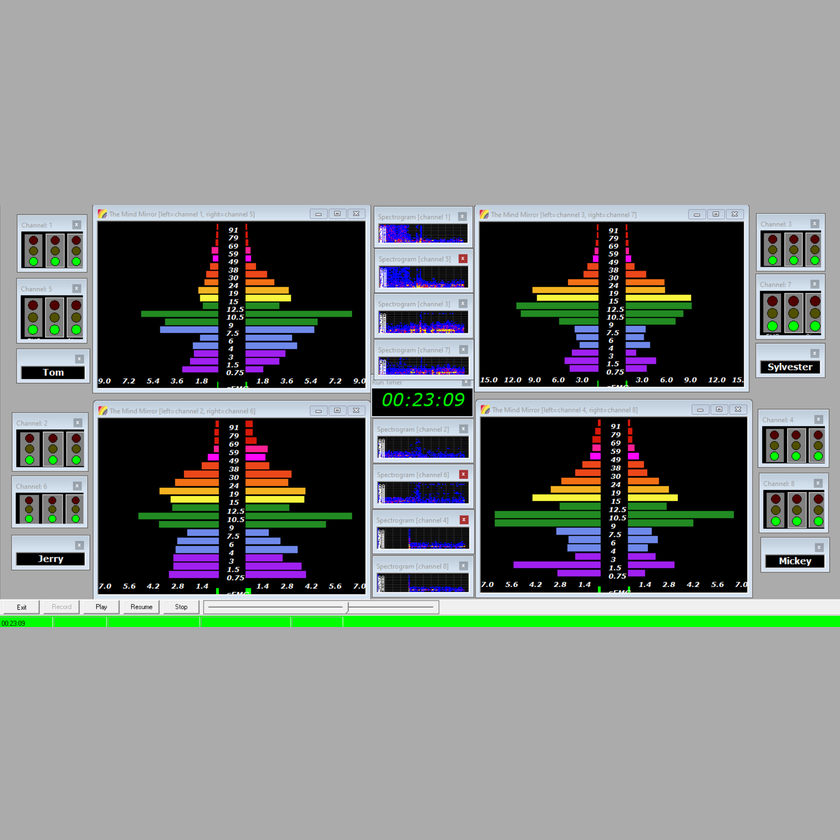 The Practitioner Kit with a set of 4 EEG sensors utilizes the Mind Mirror to its maximum capacity by providing simultaneous monitoring for four friends or clients. Includes: